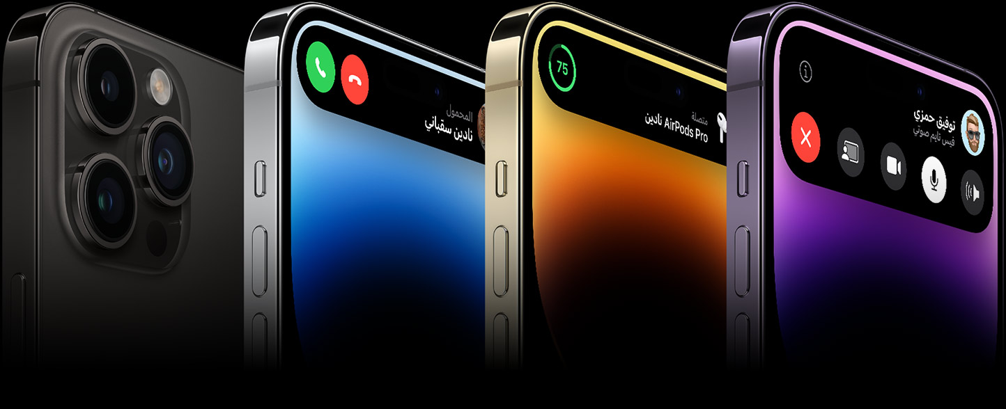 الشاشة تأتي بشكل جديد كليا حيث تأتي بشكل قطع يسمى الجزيرة المتحركة في منتصف الشاشة وتأتي من نوع LTPO Super Retina XDR OLED بمساحة 6.1 إنش بدقة 1179×2556 بكسل مع معدل كثافة بكسلات بمعدل 460 بكسل لكل إنشبالإضافة إلى طبقة مقاومة للخدش مع توافق الشاشة بالكامل لخاصية الـ Always On Display بالإضافة إلى معدل التحديث الـ 120Hz مع خاصية الـ HDR10 مع سطوع عالي جدا يصل الي 2000 شمعة .